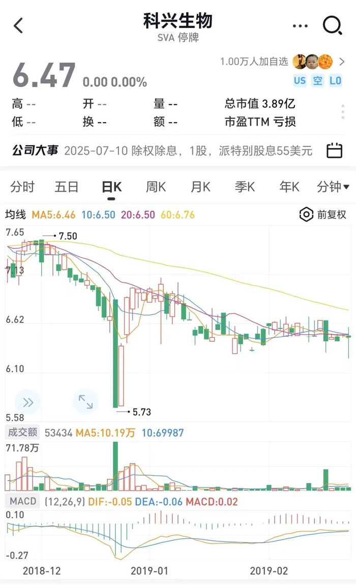 不过早在2019年2月,科兴生物就因内部治理纠纷主动申请停牌,其股价自此被冻结在6.47美元的历史价位。当2020年新冠疫情席卷全球时,这家本应享受疫苗研发红利的企业,其股价却因停牌机制错失了整个疫情周期的估值重塑机会。