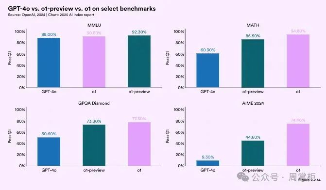 图释:GPT-40、o1-pre和o1选择基准对比