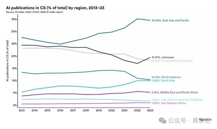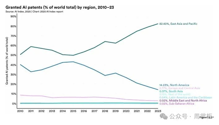其他地区如中东、拉美和东南亚也开始崭露头角,表明AI发展正变得更加全球化。