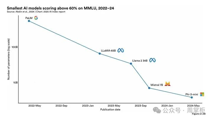 图释: MMLU 上得分超过 60% 的最小 AI 模型