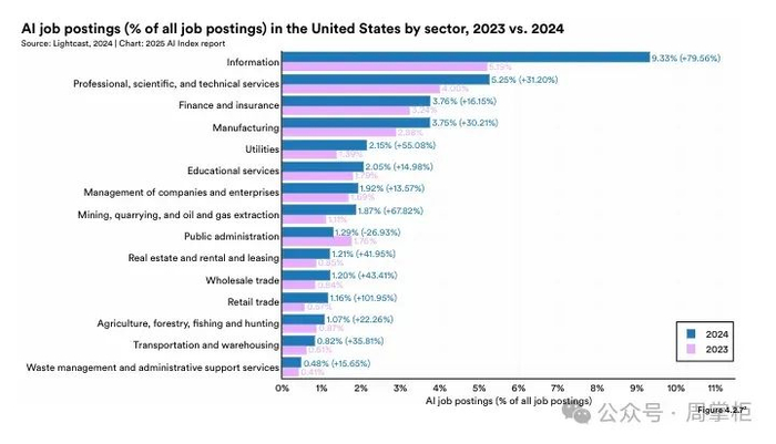 图释:2023-2024 年美国各行业 AI 职位空缺