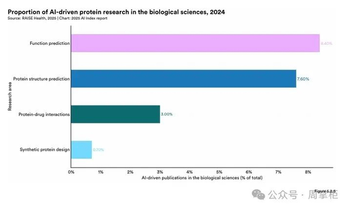 2024年,AI在科学和医学领域的应用取得显著进展。AlphaFold 3和ESM3等模型提高了蛋白质序列预测精度,Aviary训练LLM代理进行生物任务,虚拟AI实验室推动自主生物医学研究。