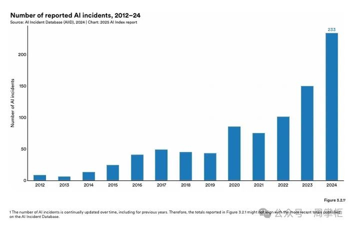 图释:2012–24 年报告的人工智能事件数量