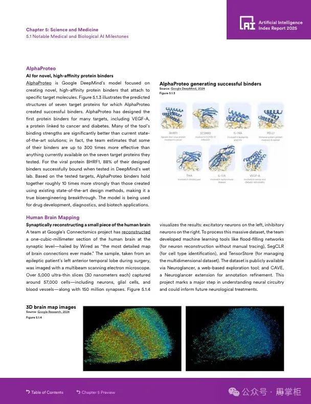 例如,Merlin等视觉语言模型提升了3D CT扫描的效率,AlphaFold 3在蛋白质结构预测上取得突破。