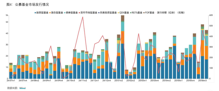 本周新成立偏股型基金份额为42.61亿份;6月23日至6月27日新成立偏股型基金份额为159.04亿份,与上周相比新成立基金数量呈减少趋势。