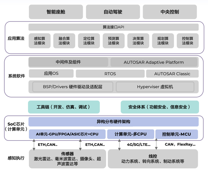 当前大模型技术驱动下,智能驾驶行业的参与者呈现梯队分化特征。头部企业已构建“芯片-硬件-算法”全栈自研体系:在硬件层面,具备传感器、控制器及核心芯片的独立设计能力,并通过外部代工完成流片;在软件层面,算法及应用开发均由自有团队主导。相比之下,二、三线企业多聚焦上层应用算法开发,但核心芯片仍依赖外部采购,在工具链、安全体系等领域仍需补齐短板。