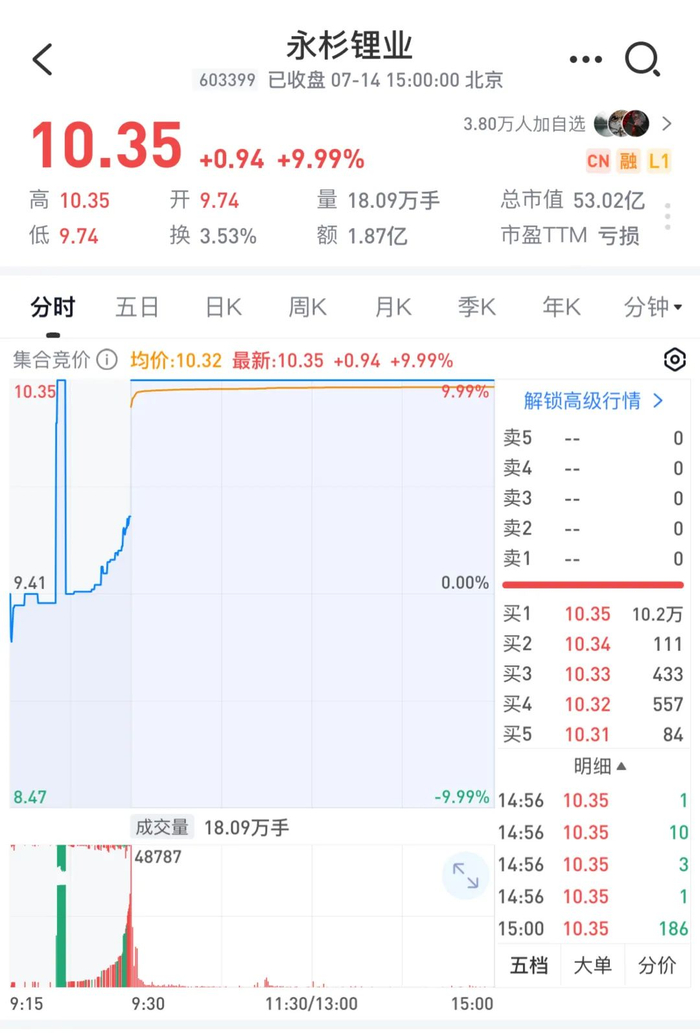 锂矿股今天表现活跃,赣锋锂业涨2.67%、天齐锂业涨2.92%,永杉锂业涨停。