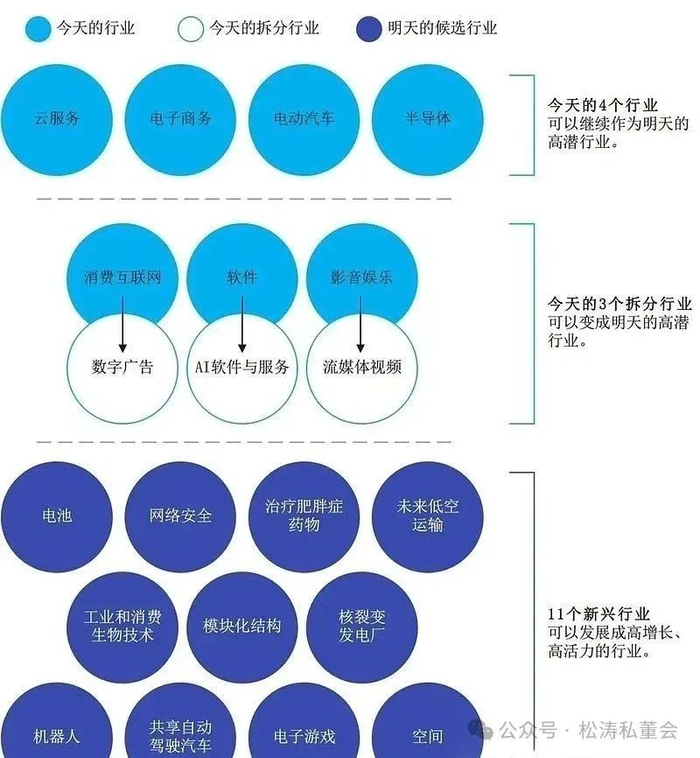 电子消费品、生物制药、工业电子、基于信息的商业服务和支付这5个行业,因后续缺乏增长和活力,可能无法在未来持续发展。