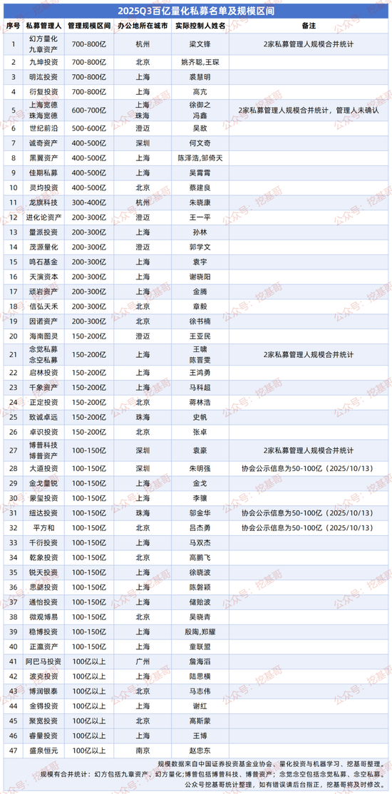 头部量化私募2025Q3各规模区间私募机构分布出炉!