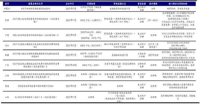 图12:各省市容量电价政策陆续出台