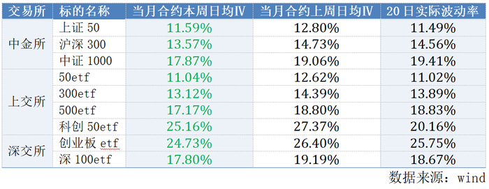 当月本周、上周隐含波动率与20日实际波动率对比如下: