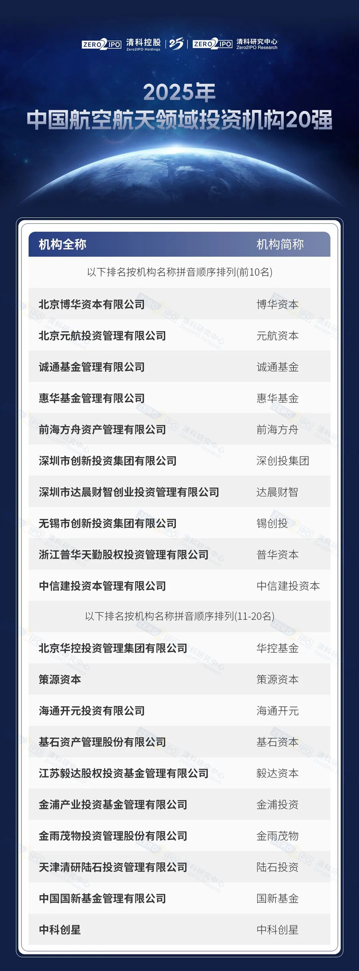 2025年中国航空航天领域投资机构20强正式揭晓