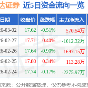 证券之星消息,截至2026年3月2日收盘,信达证券(601059)报收于17.62元,下跌0.51%,换手率0.49%,成交量15.85万手,成交额2.79亿元。