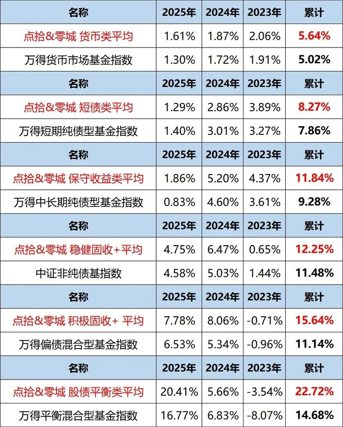 近几年债市环境复杂多变,尤其2025年波动加剧。但我们选出的固收基金,在各个细分类别中,均跑赢了同类基准指数。