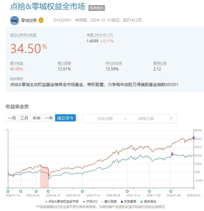 在2022年至2024年的三年熊市及震荡市中,我们榜单中的全市场基金组合均稳定跑赢了万得偏股混合型基金指数。四年多来已累计跑赢9.31%。(截至2026年2月末)