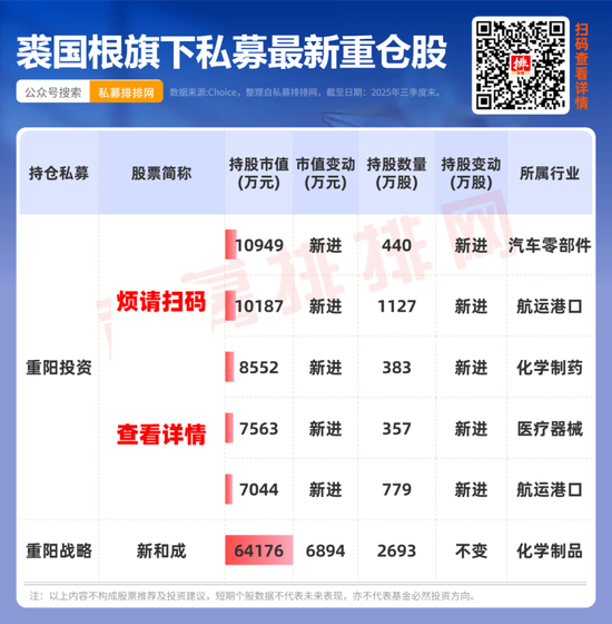 近期,新和成股价屡创新高,总市值突破千亿大关。根据新和成定期报告,截至2025年三季度末,裘国根掌舵的重阳投资旗下3只产品依然位列前十大股东名单,持仓市值接近15亿元。(点此查看持仓)