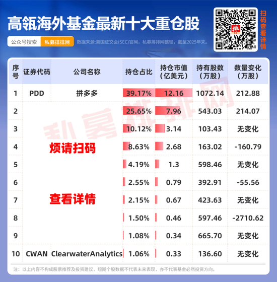 最新数据显示,高瓴资本海外基金2025年末持仓拼多多、阿里巴巴等公司。截至2025年四季度末,HHLR在美股市场的持仓总市值约为31.04亿美元,持仓标的数量则维持在33只不变,中概股市值占比高达92%。