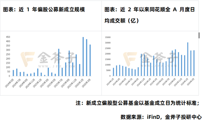 资金节奏缓和,市场情绪略有收紧:3月份新成立偏股型公募基金363.63亿元,环比下行14.81%,海外风险事件影响下权益市场震荡,新基发行节奏较缓。资金交易上iFinD全A月度日均成交金额本月为23301.45亿元,环比上涨0.84%,资金氛围整体偏缓。