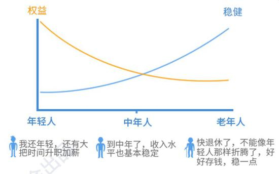 简单来说:随着年龄越大,配置权益类资产(较高风险)越少,非权益类(较低风险)越高,平衡不同年龄可承受风险能力。