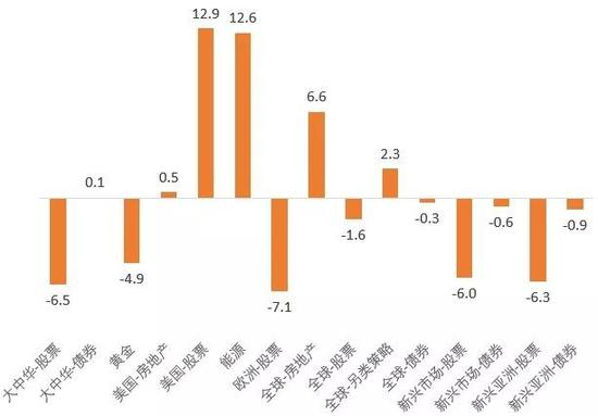 从下图可知,2018年各类资产的表现是迥异的,既有表现较弱的新兴市场股市,也有获得大幅正收益的美股和能源。同时,各类资产的表现还在轮动之中,QDII让普通投资者也能把握住海外各种资产的投资机会。