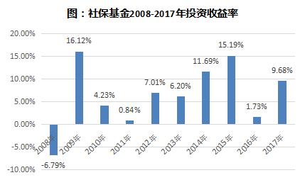 根据《全国社保基金理事会社保基金年度报告(2017年度)》,2017年全国社保基金投资收益率达到9.68%。自2000年8月成立以来,社保基金资产总额超2.2万亿,累计投资收益额突破1万亿,年均投资收益率达到8.44%。在过去10年间,社保基金历经市场多轮牛熊转换,除2008年金融危机时微亏以外(同期上证综指暴跌65.39%),其余各年均实现正收益。(数据,截止到2017年末)
