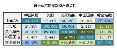 比如,同是股票类,但中国A股和美国市场股票的结合可以充分利用“本土市场”和“海外市场”的低相关性(不足30%)来平滑组合波动;债券类资产呢,又明显的表现出其相对于股票类资产的逆相关性(eg.中国10年期国债和A股过去10年间相关性为-6.4%);实物资产类,比如黄金、原油等资产相较股票有逆周期的属性,而房地产又有高度顺周期属性。这些大类资产不同的属性特征,保证了资产配置组合中的风险能够被大大降低。