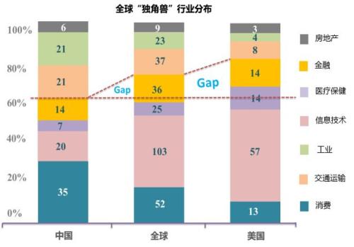 二是从国家成长的雁阵模式来看:中国会逐步向美欧日等先进经济体发展,目前美国独角兽企业集群在信息技术、医疗、金融和消费领域,合计高达98家;相比中国只有76家,而中间的差距就是中国企业的成长空间。