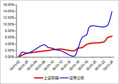 【图5:证券公司指数与上证综指年初反弹行情中的涨幅比较】
