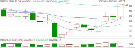 9月21日,券商板块在龙头中信证券的带领下小小地扬眉吐气了一把,证券公司指数上涨2.37%,尽管没有涨过大盘,更是被银行板块远远甩开,但也算是跟上了大部队的步伐,没有独自在坑底徘徊……