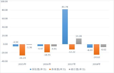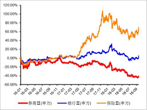 这两年很多粉丝吐槽券商妹,其实券商妹自己也想吐槽。特别是在银行、保险两位大兄dei的衬托下,券商的弱势格外突出,2015年以来连跌4年,累计跌幅超60%。即使是蓝筹大牛市的2017年,保险板块(申万保险Ⅱ)上涨超过80%,银行板块(申万银行Ⅱ)上涨超过10%,券商也无视旁人地“独自美丽”,华丽丽地跌了12%。