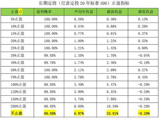 对于20年的定投,是否止盈,对盈利概率几无影响