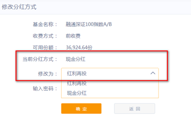 如果你已经开通了定投,但分红方式不是红利再投资,没关系,可以在基金交易界面——“修改分红方式”中进行修改。