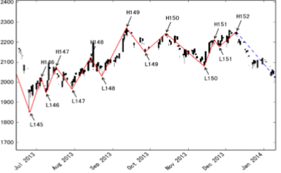 图6:缠论中的笔的分段及拐点的确认