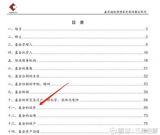 3.整个招募说明书很长,足足有115页。三思君在这里就直奔主题,选择第十一章的“基金的投资”。