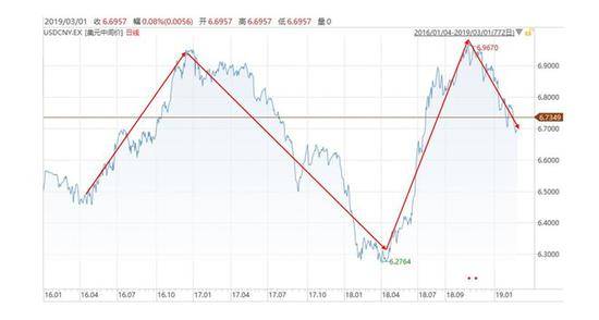 2018年以来的人民币汇率可谓是波兰诡谲,起起伏伏。期间汇率一度震荡超过10%,而且和大家的预期不一样的是,从18年初到年底,人民币经历了大幅贬值后又小幅升值,各位也可以看一下这个夸张的走势。然后2019年以来到今天(3月1日),人民币又持续强势,升值了244个基点(即2.44%)。