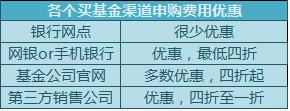 正所谓条条大路通罗马,买卖基金的渠道有很多,如果我们到一家基金公司的官方网站购买基金,那样的话我们只能买同一家基金公司下的基金,优惠多了,但选择少了。而要是我们用手机银行购买基金,但基金类型有限,同样,虽然第三方销售公司给了很大的优惠力度,然而现在市面上有些销售公司没有基金销售许可证,很大概率是不靠谱的公司,最好选择合法正规的公司,谨慎为妙。最后,因为我们对基金持有时间的不同,不同基金类型的比率也不同,所以还是要根据各自不同的情况来具体分析。