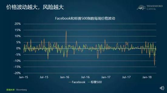 如果我们回顾一下Facebook股票和标普500指数的每周价格波动历史,就不难得出结论,Facebook的投资风险要大得多。