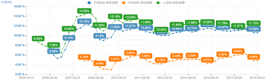 图:三大指数近20年的净利润率