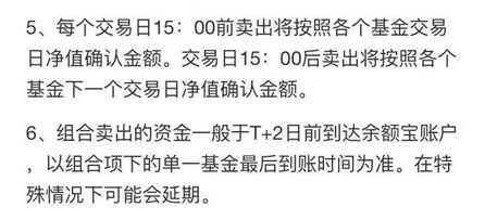 另一方面,由于加入了债券基金,基金组合的流动率也有所下降。怎么说呢?我们都知道有余额宝是可以随用随取、2小时内到账的,还可以直接当零钱包线上支付,但是组合后就不行了,具体卖出资金据交易规则显示一般于T+2日前到达账户。