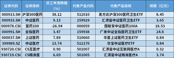 下面小书童给大家贴出主要的医药、医疗指数以及它们的代表产品,供大家参考。