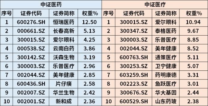 从编制的角度看中证医药是从中证800指数中挑选医药卫生行业的股票为成份股,而中证医疗是从全市场选取与医疗器械、医疗服务等与医疗行业相关的股票为成份股。