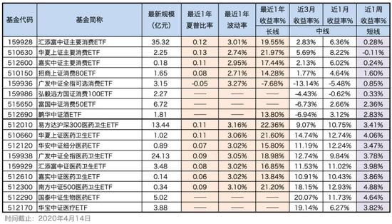 消费主题ETF有8只,从(长线)最近1年夏普比率、波动率、收益率指标来看,华夏上证主要消费ETF和汇添富中证主要消费ETF表现较好,从(短线)收益指标看,鹏华中证酒ETF、富国中证消费50ETF的贝塔弹性较好。医药主题ETF有9只,从(长线)最近1年夏普比率、波动率、收益率指标来看,易方达沪深300医药卫生ETF、华夏上证医药卫生ETF表现较好,从(短线)收益指标看,南方中证500医药卫生ETF、国泰中证生物医药ETF的贝塔弹性较好。