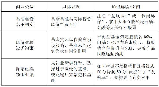 这些规定旨在杜绝“基准与投资风马牛不相及”的现象。举例来看,若基金明确以医药、生物技术为投资方向,就不应将中证综合债指数作为业绩基准;而沪港深基金的基准,也需兼顾香港和内地市场的相应权重,不能只参考沪深指数。