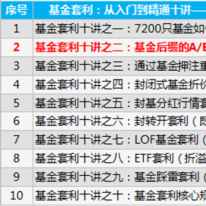 我们近期推出了无风险套利系列专题,详见《可转债套利:从入门到精通十讲》、《要约收购套利:从入门到精通7讲》等,本次带大家一起来玩转基金套利,今天是《基金套利:从入门到精通十讲》的第2讲,完整大纲目录如下: