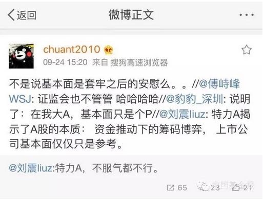 好玩的是,这只股比特力A还绝,没有任何热门题材傍身,也没有重组消息。9月22日该股流通股东换了一茬,23日又换了一茬。坊间传闻,该股在停牌前就已高度机构控盘,现在的巨震,实际上就是用资金“掩护”机构出逃。