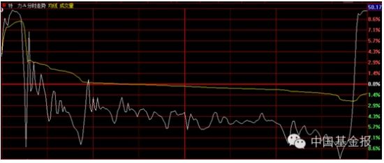 就在市场以为特力A将以此收场时,该股在下午2:41分突然暴跌至跌停价格41.14元,但是瞬间又被大量买盘拉起,并一路上冲至50元以上,最终以单日上涨9.74%报收50.16元。