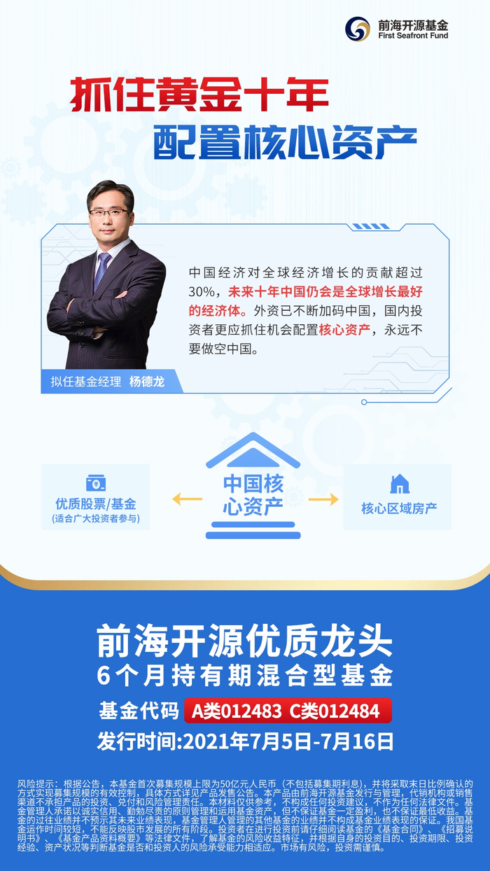 过去20年人与人的财富差距,在于是否拥有优质房产。杨德龙表示,未来20年人与人之间的差距,可能就在于有没有持有优质股票或者优质基金。“通过配置前海开源优质龙头基金,相当于间接的配置了优质的核心资产。”