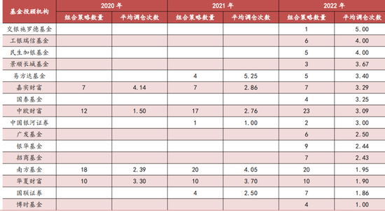 表16.各基金投顾机构的基金投顾组合策略调仓频次统计