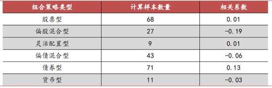 表17.各类型基金投顾组合策略年度调仓频次与年度收益率相关系数
