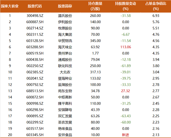在赎回的影响下,国泰大农业的重仓股明显减持要多于增持,并且减持幅度不小。
